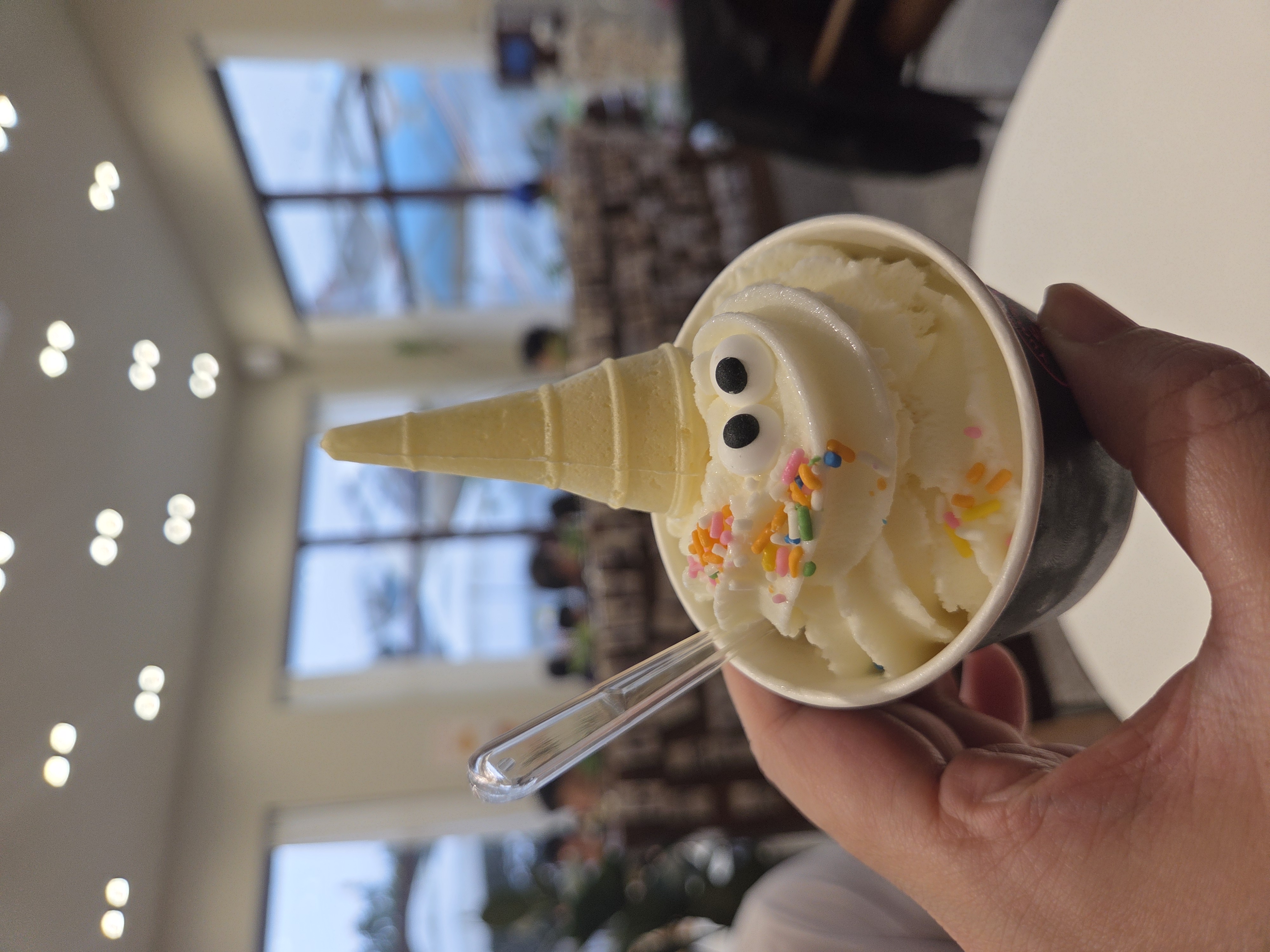 깜찍한 젤라또 아이스크림: 아이들을 위한 젤라또 비주얼도 환상적이었어요! 동그란 눈알과 미니 콘으로 만든 뿔(?)이 올라가 스마일 캐릭터 같은 모양이었는데, 아이들이 너무 좋아해서 사진을 백만 장 찍었답니다. 🥳