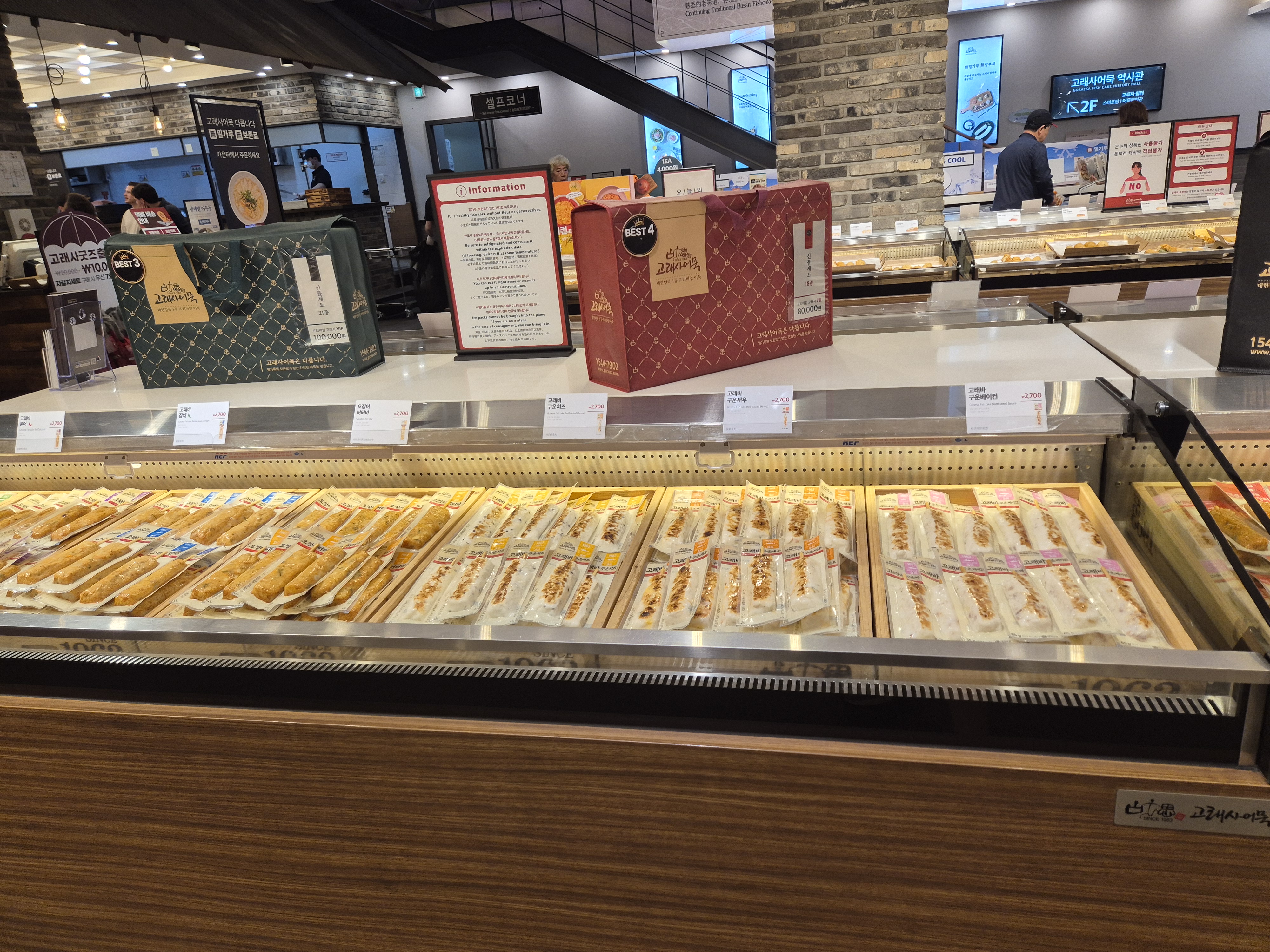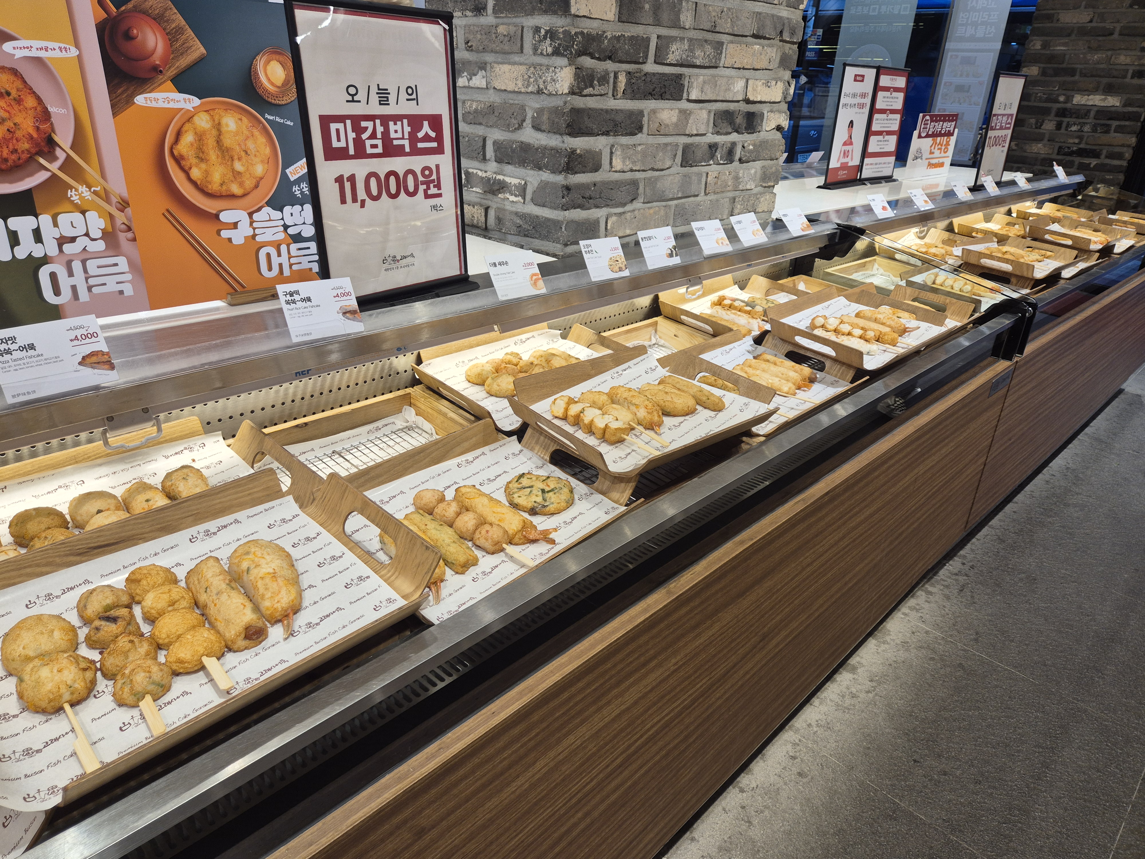 매장에 들어서자마자 눈을 사로잡는 것은 바로 싱싱하고 먹음직스러운 다양한 어묵들이었어요. 어묵뿐만 아니라 어묵으로 만든 핫바, 각종 선물세트들이 깔끔하게 진열되어 있었습니다.