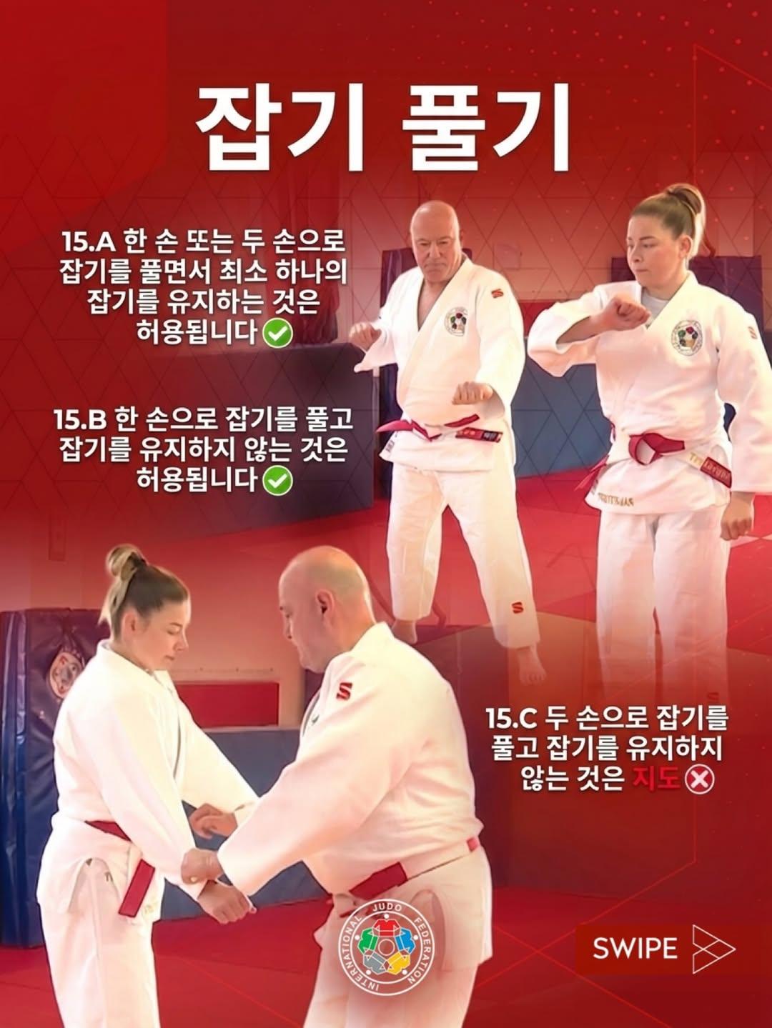 유도 선수들과 지도자분들께서는 바뀐 규정을 잘 숙지하셔서 실전에서 당황하는 일이 없으시길 바랍니다!