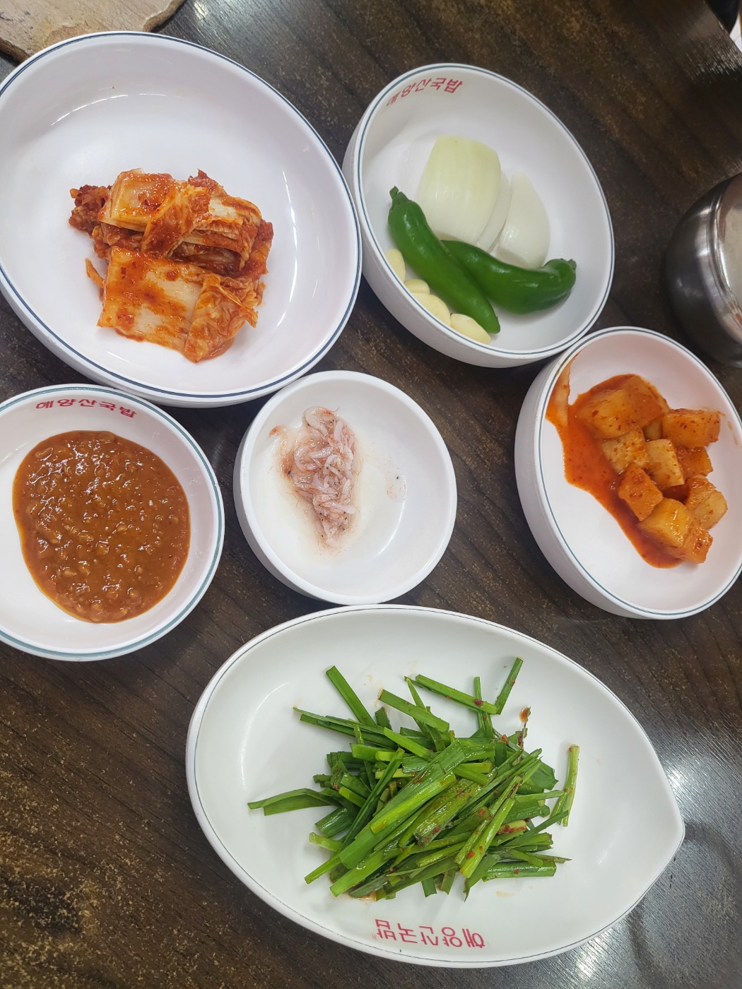 기본 반찬들도 깔끔하고 정갈하게 나와서 좋았어요. 특히, 셀프바에 비치된 다대기와 고추를 갈아 넣으면 또 다른 매콤하고 칼칼한 맛을 즐길 수 있어서 질리지 않고 맛있게 먹을 수 있답니다.
