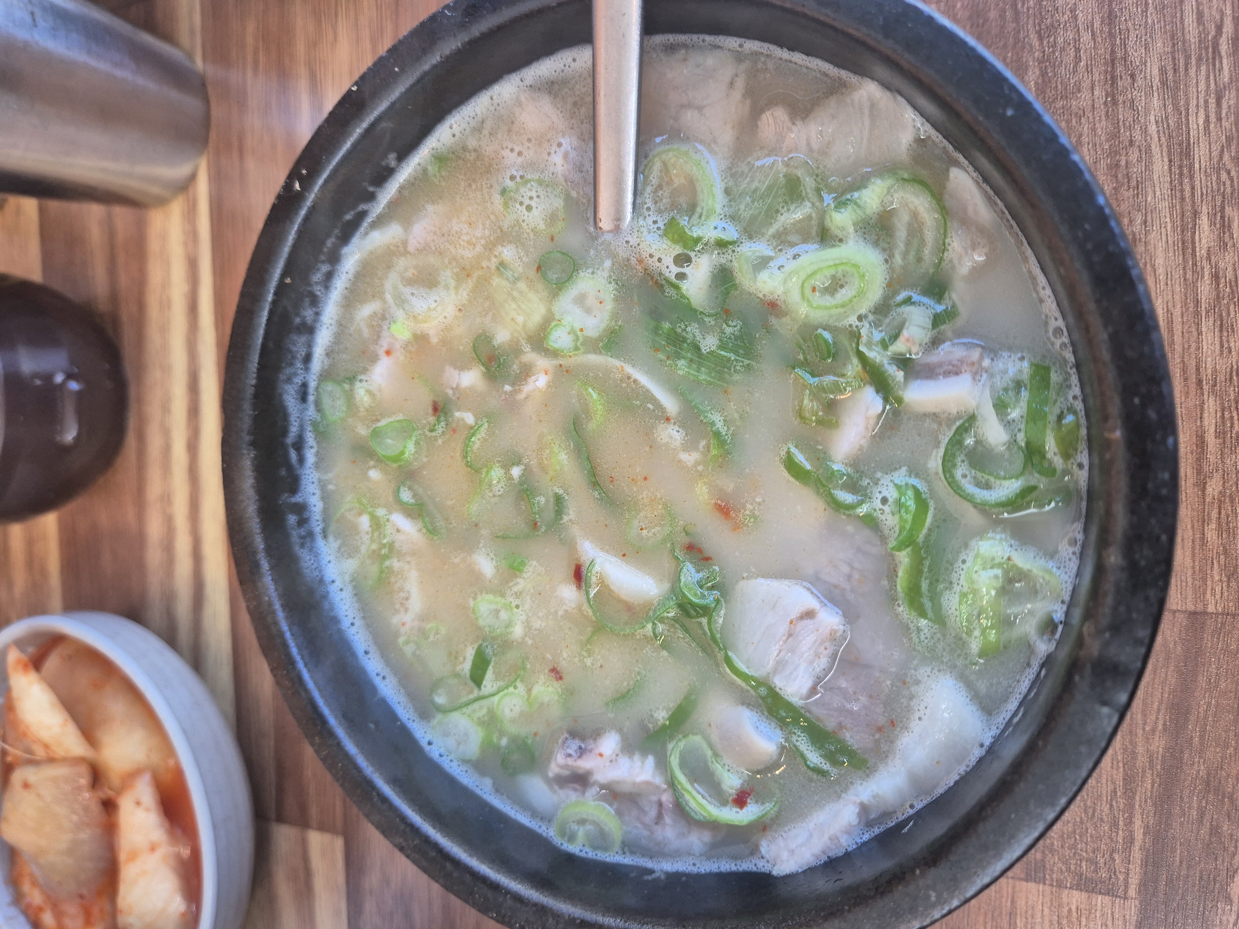 함께 나온 깍두기와 겉절이 배추김치도 국밥과의 궁합이 최고였습니다. 특히 아삭하게 잘 익은 깍두기와 방금 담근 듯 신선한 겉절이는 국밥의 느끼함을 싹 잡아주어 더욱 맛있게 식사할 수 있었습니다. 밥 한 공기를 국물에 말아먹으니 속이 든든하고 따뜻해지는 것이 제대로 된 한 끼 식사를 했다는 만족감이 밀려왔습니다.