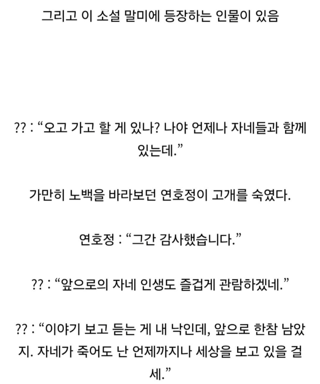 그리고 마침내 〈흑백무제〉가 완결을 맞이했을 때, 독자들은 또 한 번 놀랐습니다. 소설의 마지막 장면에서 갑자기 등장한 인물 ‘노백’.